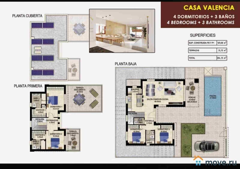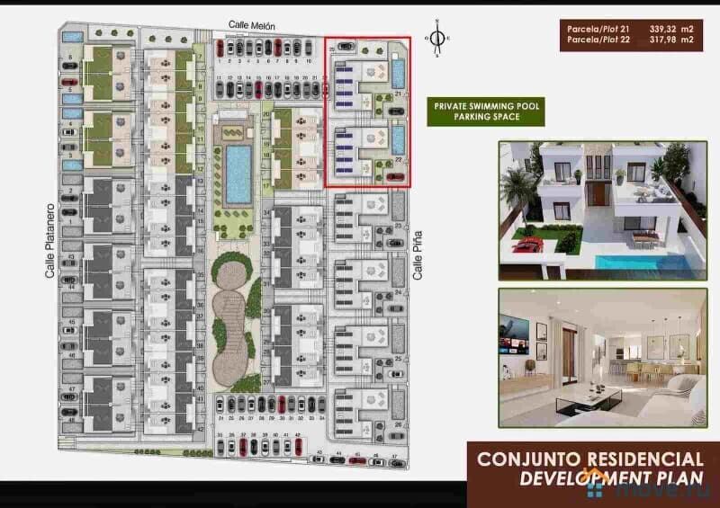 6 современных вилл модели VALENCIA с 4 спальнями и 4 ванными комнатами на двух этажах. Частный бассейн и парковка на участке, площадью более 300 м2.